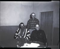 KEL 052 Twin Falls Cattlemen Association officers were reelected by unanimous vote of the membership. From left to right are Don Ramseyer, president, Tom Callen, vice president, and C. W. Daigh, secretary. On the table are papers and an ashtray.
