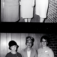 Assisting with the arrangements to organize a Cowbelles unit for the Twin Falls, Jerome, and Three Creek area are, from left to right, Mrs. Lorinda Wines, president of the American National Cowbelles, Mrs. Russell C. Larsen, past president of the Idaho Cowbelles and acting president of the organizational group, and Mrs. Erin Lord, president of the Idaho Cowbelles. An organizational luncheon was served at the Depot Grill. They are wearing blouses and skirts, and Mrs. Wines and Mrs. Larsen are wearing hats.