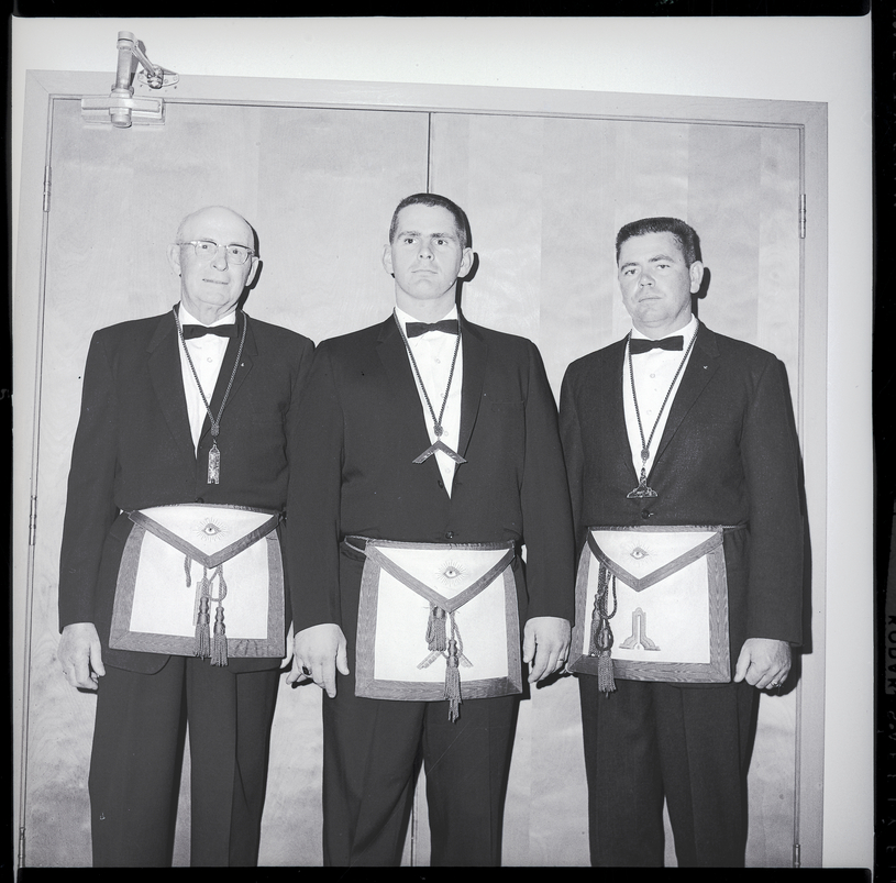 Installed during ceremonies at the Masonic Temple were, from left to right, Floyd Bandy, junior warden, Keith Jensen, worshipful master, and Robert Black, senior warden. The men all are members of Kayler Lodge No. 94.