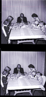 KEL 544 The family of Reverend and Mrs. Eugene Tjarks pray around a dining table during the Thanksgiving holiday. Seated from left to right are Mary Tjarks, Pamela Tjarks, Pastor Tjarks, Mrs. Tjarks, Kathleen Tjarks, and Irian Tjarks. Pastor Tjarks is minister of the Twin Falls Our Savior Lutheran Church.