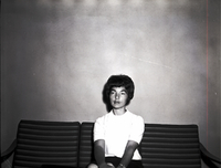 KEL 474 Mrs. Nedra Gentry, president of the Community Y Wives, sits on a couch. She is wearing a white shirt and black skirt.